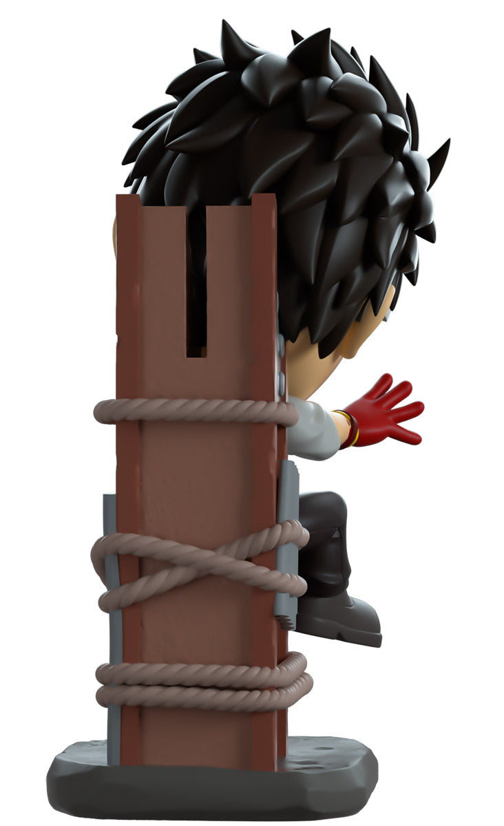 We’ve caught Dwight in our trap to make sure he debuts his Youtooz! What, it’s not as bad as it looks, I swear! Suspended at 4.9 inches tall and reaching out a bloodied hand pleadingly as he grips the large spike that juts out from his chest from the horrid trap he has been violently forced onto, blood sputters out from his gritted teeth as his face portrays pure pain. With his dark brown hair swept back and wearing black-rimmed glasses, his outfit consists of a short-sleeved grey shirt, pens in his shirt pocket, dark grey pants and brown boots. The exterior of his packaging sees Dwight struggling against the trap he has been put in. While the interior is a black silhouetted forest with a glowing red and blue haze and the white ‘Dead by Daylight’ logo at its back, this grim motif then continues onto the protective sleeve with dark trees surrounding it completely as his figure can be seen through the large clear window at its front. This collectible ships in a matte, embossed, protective outer sleeve and a custom-sized plastic protector for maximum protection during shipping.
