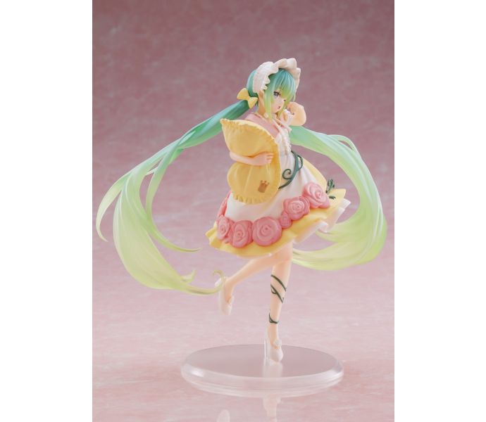 Introducing a new figure in the Hatsune Miku Wonderland line, Sleeping Beauty! Miku looks ready to sleep for awhile in her gown featuring briar and roses like the fairytale character’s namesake. This is sure to be a wonderful addition to any Miku fan’s collection.