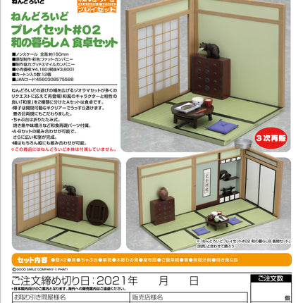 This playset is based on a traditional Japanese-style room and is separated into two sets; this A set includes the Japanese sliding door and the dining table.
