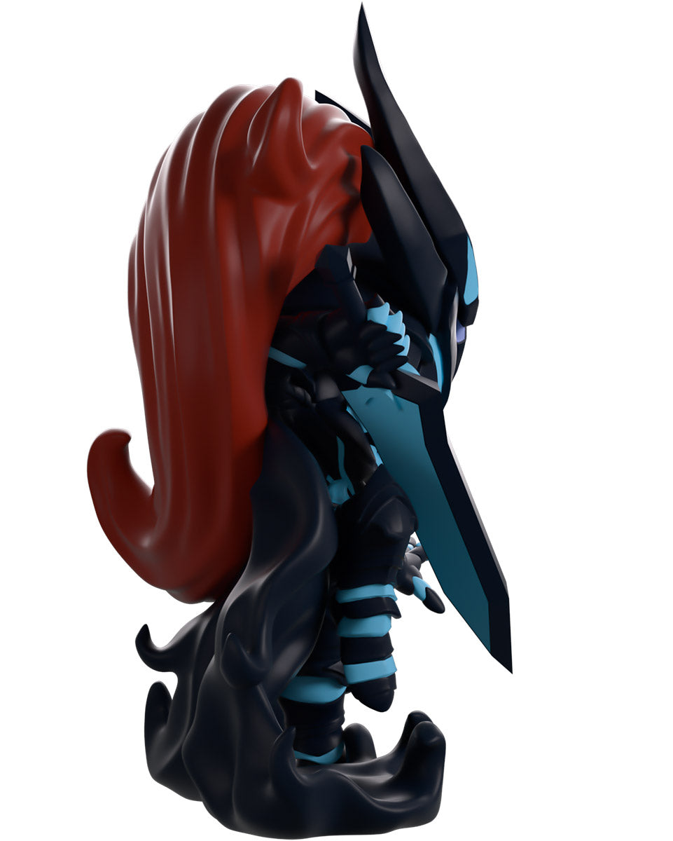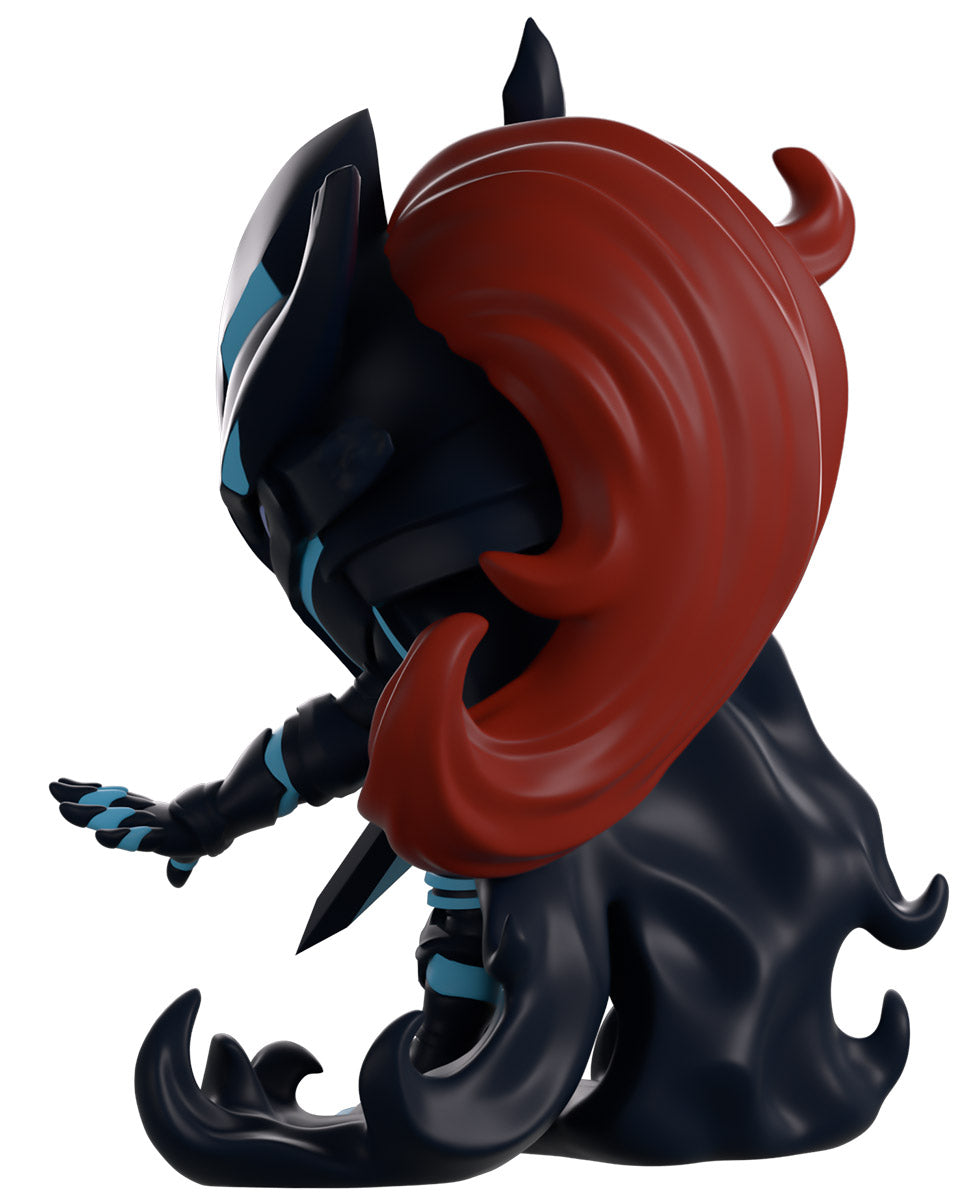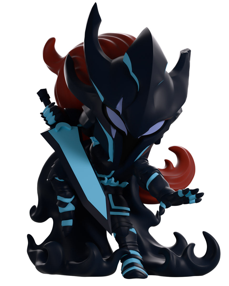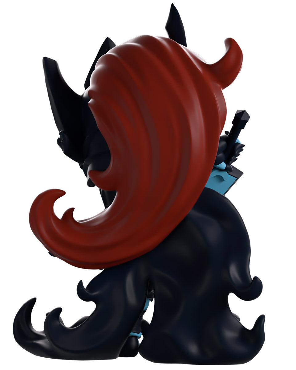 It’s the final moment of the fight and Igris is ready to take his enemies head with his return to Youtooz! At 5.4 inches tall and prepared to lunge forward with the pointed greatsword held back in his right hand, the left hand reaches forward to suspend his foe in place for the final blow. With light purple eyes shining from his angular helm that has a pair of cleaved horns on its left side and a mane of deep red hair flowing out from the back, blue highlights line his dark armor as a long jagged cloak flows from the shoulders to curl around his feet. The exterior of his packaging shows a ruined city with flames bursting from collapsing buildings. The interior then is covered in a white-to-blue gradient with the ‘Solo Leveling’ logo printed on the back, while the protective sleeve looks up at a dilapidated building as a large blue moon shines above a city skyline, and his figure can be seen through the large clear window at the packaging’s front. This collectible ships in a matte, embossed, protective outer sleeve and a custom-sized plastic protector for maximum protection during shipping.
