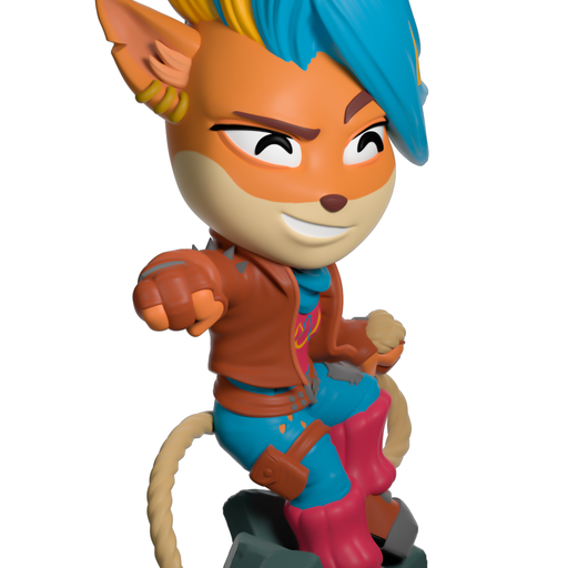 Newly designed in Crash Bandicoot™ 4: It's About Time, Tawna's revamped look can now be held in hand with the release of her inaugural Youtooz! Standing on a brick pile, detailed rope in hand, Tawna is ready to leap forward. With streaks of blue in her hair, she wears knee high pink leg warmers, blue pants, pink shirt, brown leather jacket with grey studs on the shoulders, trademark fingerless leather gloves and a blue scarf. Captured in mid attack, she grins fiercely while throwing a right hook. Tawna's packaging was illustrated by Youtooz artists in collaboration with the Crash Bandicoot™ 4: It's About Time team with elements of in game items and a notable level present. This collectible ships in a matte, embossed, protective outer sleeve.