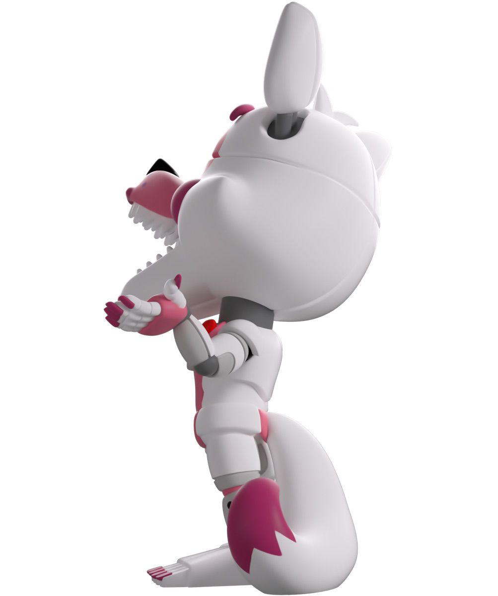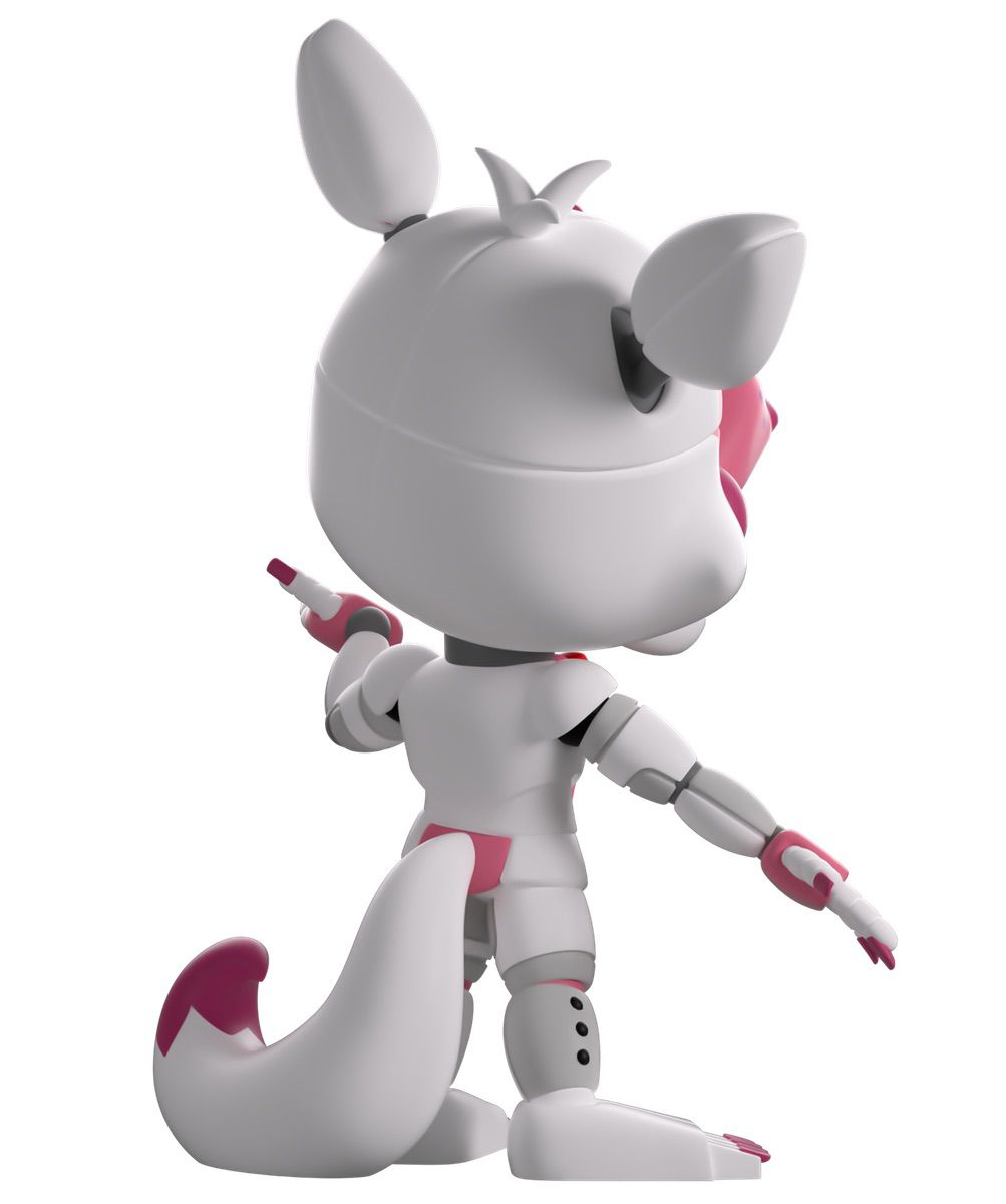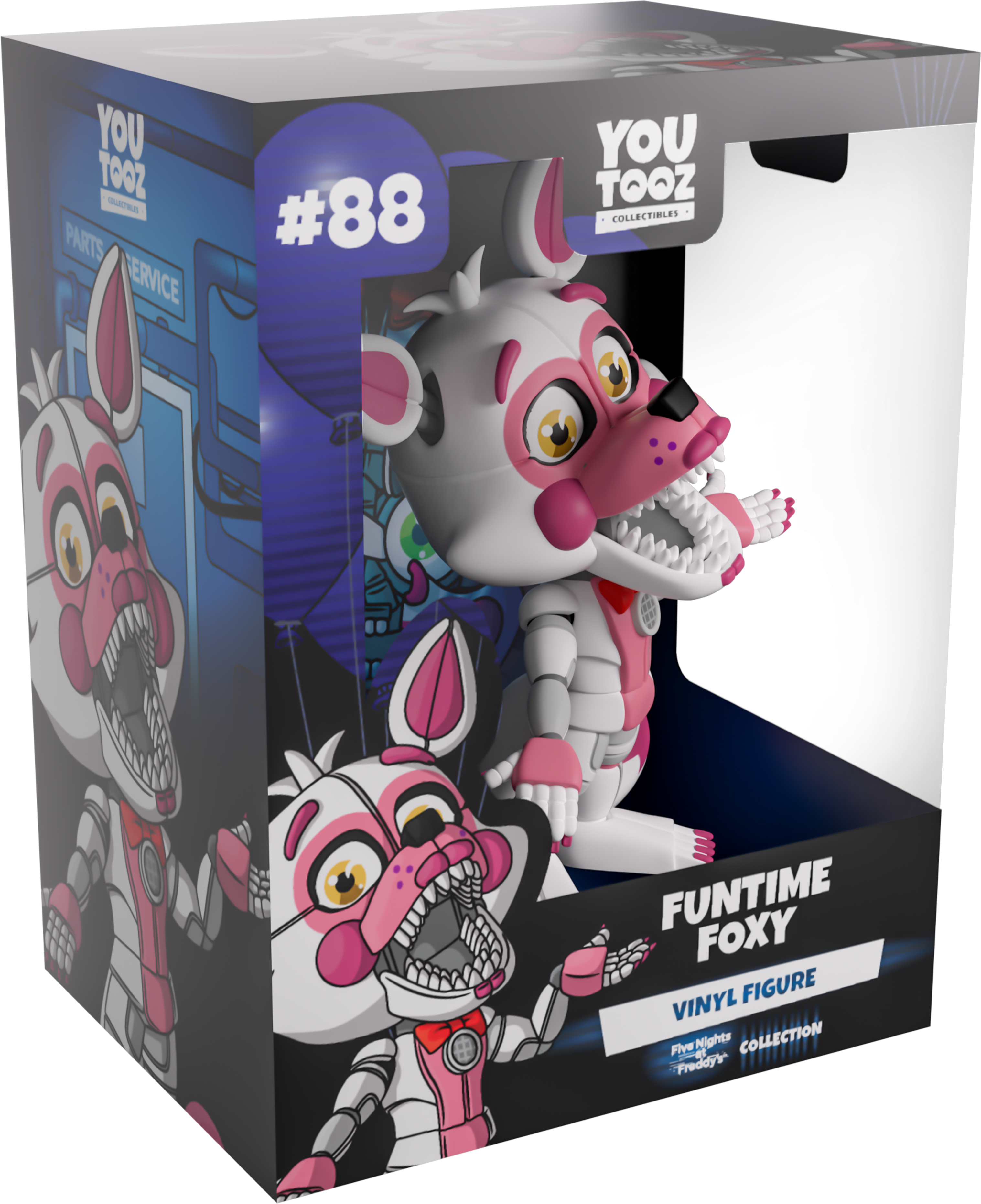 It’s time for Funtime Foxy’s encore! Wait, they haven’t been at Youtooz before? Well, let's change that! Standing at 4.7 inches tall and throwing their hands out to either side as they make an applauding entrance, their mouth opens up to reveal a series of razor sharp teeth as bright yellow eyes shine out from their pink face. With a pair of teardrop-shaped ears sticking out from the top of their head on either side of a small tuft of fur, they wear a red bowtie above their pink chest, which matches their hands and the tip of the thick tail that curls behind them. The exterior of their packaging sees Foxy lurking in the shadows as a door sign illuminates a checkerboard floor, while the interior sees them peering right at you through the darkness. The protective sleeve then showcases a room filled with pipes, vents and jagged paneling as their figure can be seen through the large, clear window at the packaging’s front. This collectible ships in a matte, embossed, protective outer sleeve and a custom sized plastic protector for maximum protection during shipping.