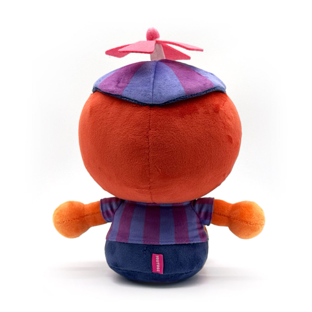 JJ’s snuck into Youtooz for her plush debut! But she just keeps staring at us… Stop it… Stop it!! With a huge tooth-filled open smile stretching across her face to sit between rosy pink cheeks, she sits at 9 inches tall with a pair of bright pink eyes staring directly forward as a purple and blue hat sits atop brown hair and is topped with a pink propeller. Dressed in a striped short-sleeve shirt that matches her hat with two black buttons on its front, she wears blue pants as her brown shoes are kicked forward, and her arms stick out from either side. This plush is packed to the seams with 100% PP cotton and is made of the softest minky material with accents of felt, absolutely perfect for cuddling or staring with….