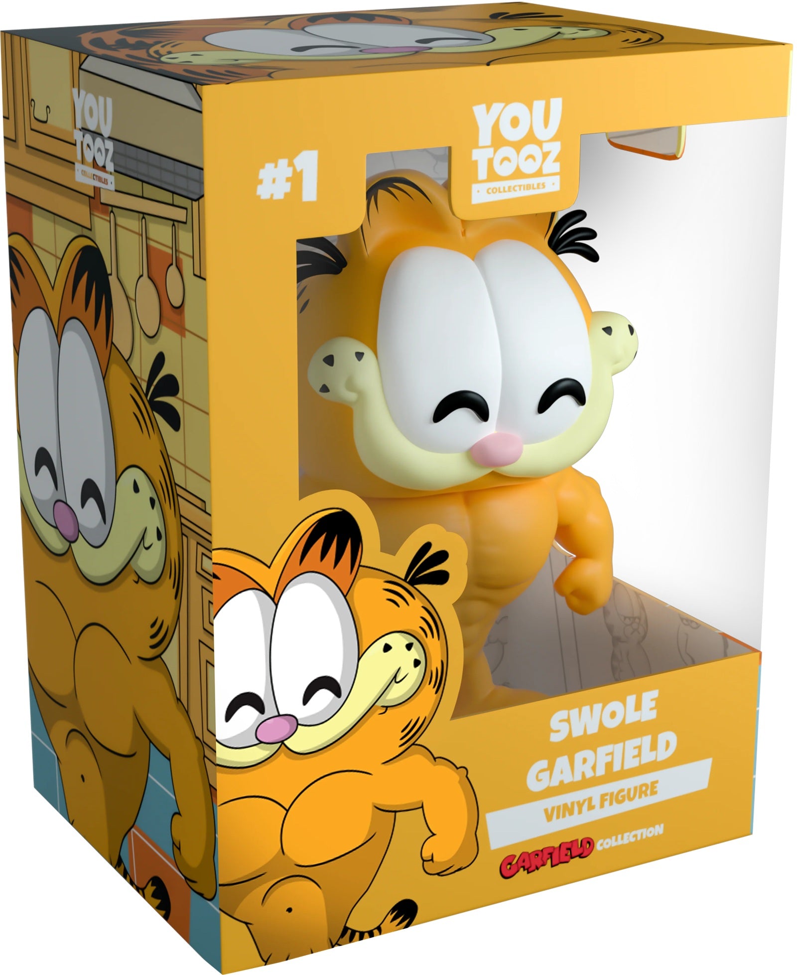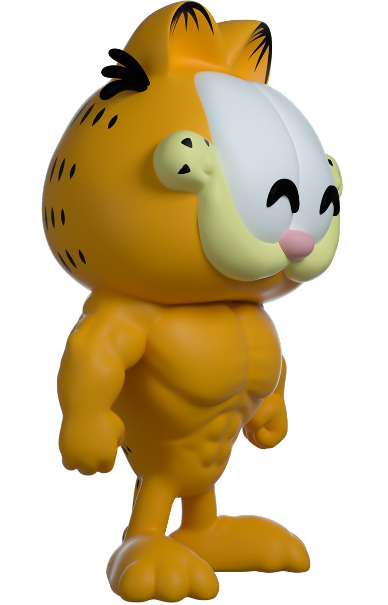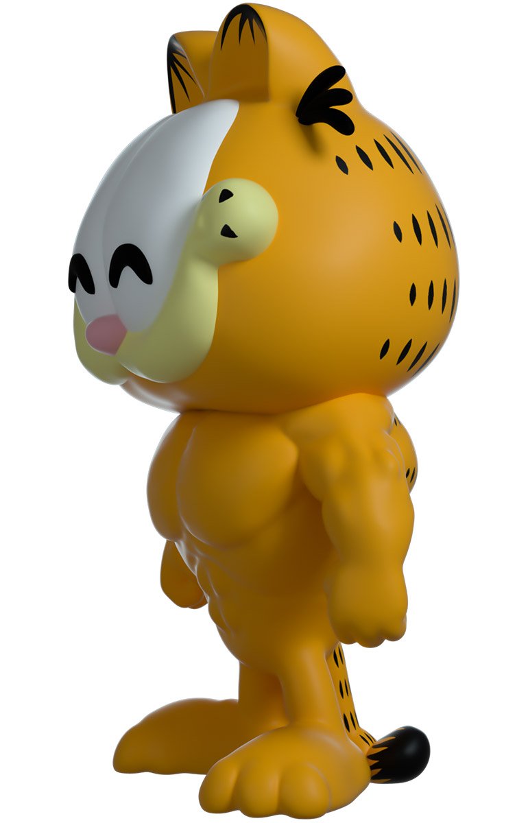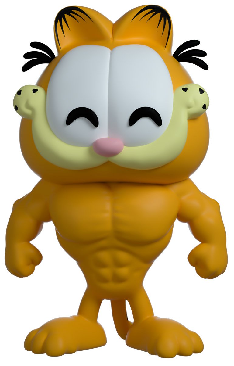 This is Garfield in his final form- the power he holds is unmatched. Don't even try to cross him because you will lose. Swole Garfield stands flexing at a solid height of 4.5 inches. Even though he is the same height as the regular Garfield Youtooz, don't tell him that or you will hurt his feelings. The exterior of his double-walled packaging shows the inside of his owner, Jon's, kitchen with thought bubbles coming from Garfield to shine more light on what kind of cat he really is. The interior is a black and white mash up of comic panels featuring Garfield, Odie, and Jon. The protective sleeve also showcases the scenes of the comic in a darker saturation than the inside with Garfield's logo on top in contrasting red letters. This collectible ships in a matte, embossed, protective outer sleeve and a custom sized plastic protector for maximum protection during shipping.