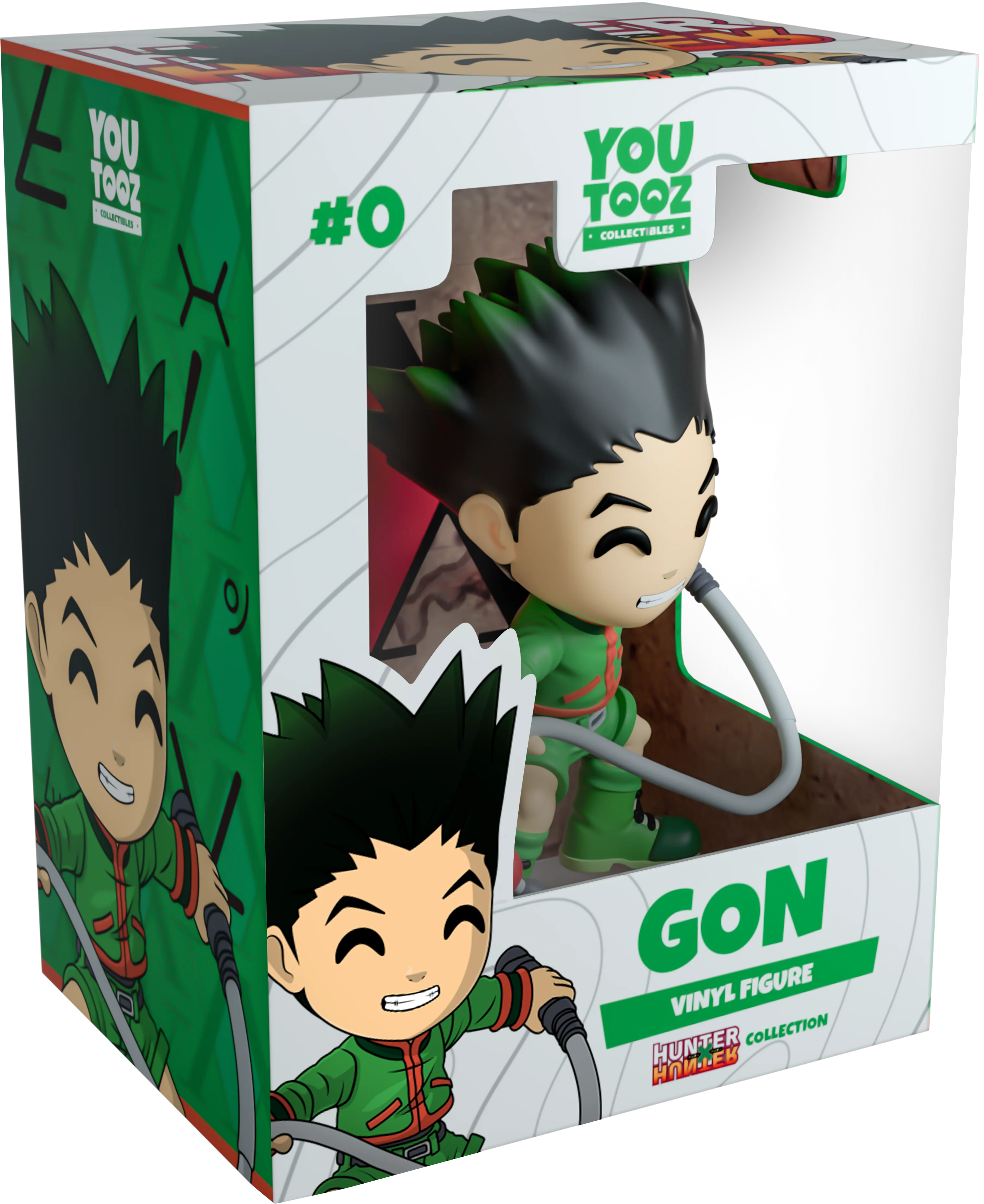 He’ll follow in his father’s footsteps, no matter what it takes. Gon readies his telescoping fishing rod, standing at 4.3 inches tall, holding the rod in his left hand with his right hand outstretched. He’s dressed in a green and red jacket, green shorts held up with a black belt, and green boots. His mouth is held in a grimace, eyebrows raised over his black Youtooz eyes. The exterior of his double-walled window box features a dark green background decorated with runic symbols. The interior is designed with a rustic map. This collectible ships in a matte, embossed, protective outer sleeve and a custom sized plastic protector for maximum protection during shipping.