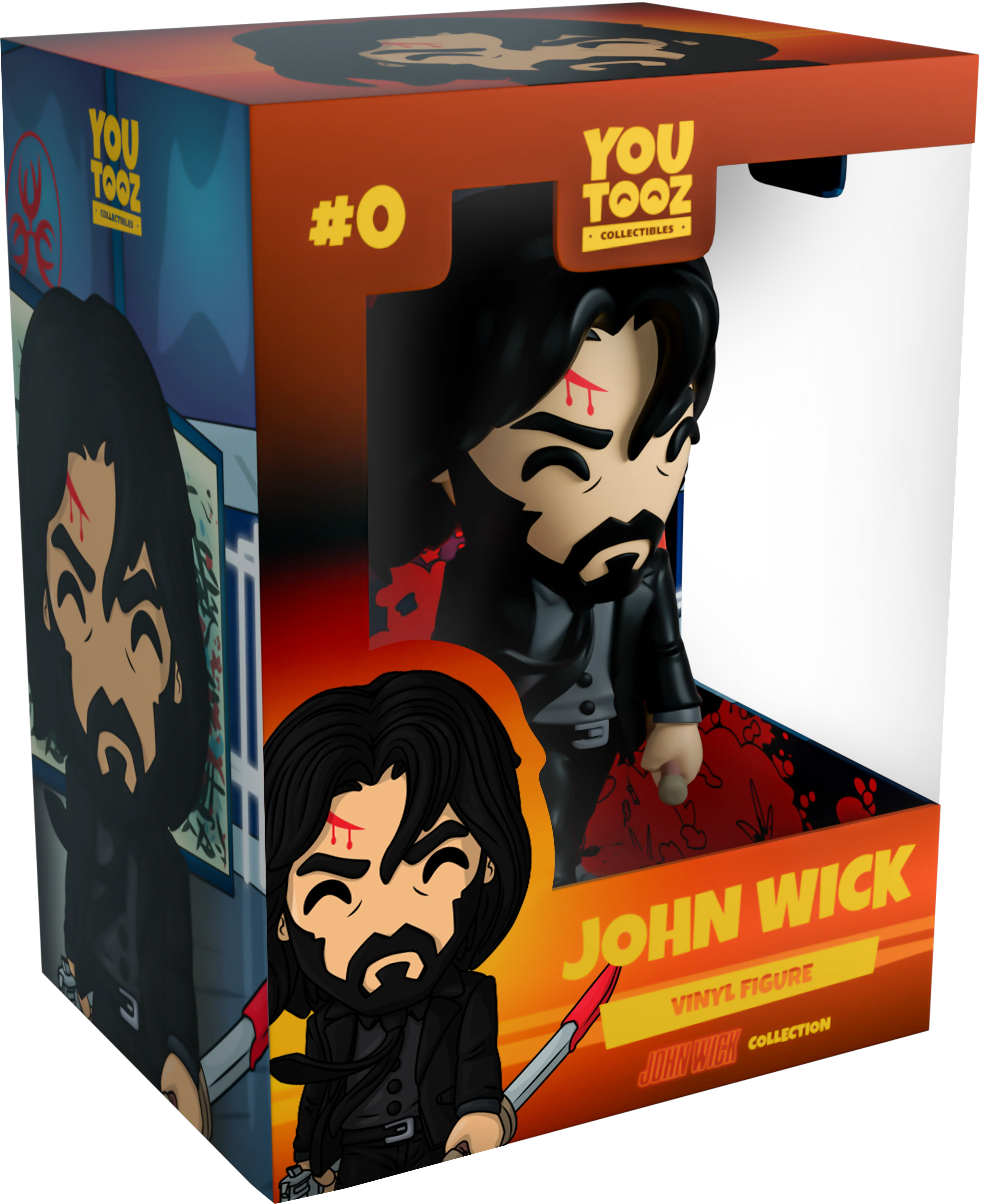 John Wick kicks the door down into being his very own Youtooz. The figure stands at 4.6 inches tall, in his classic black suit. John is shown in a walking stance, holding his blood-soaked sword in his left hand and a pistol in his right hand. His locks flow in the wind to show movement, while his face is tight and serious. The windowed display box has been illustrated to show a notable scene from the John Wick movie. Showing artfully decorated screens on a shiny floor. The inside of the box has a beautiful illustration of the top of cherry blossom trees spread across the bottom half of the inside of the box. While the protective sleeve has been illustrated to show John Wick with an orange-to-red backlight. This collectible ships in a matte, embossed, protective outer sleeve and a custom-sized plastic protector for maximum protection during shipping.