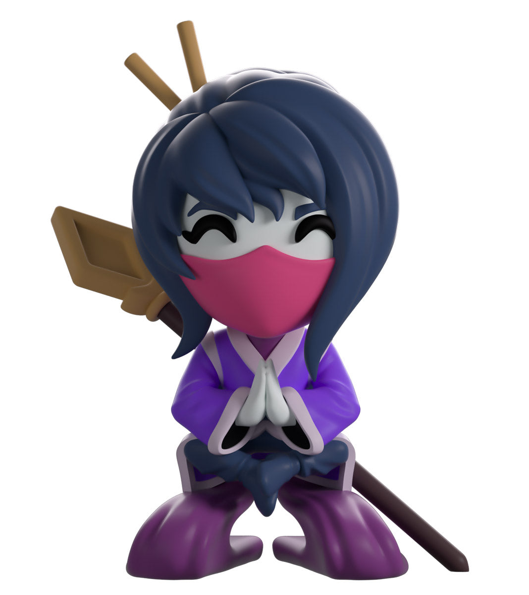 The Watcher has deemed the Spire isn’t the only thing that needs observing, so they’ve come to Youtooz to see exactly what’s going on! Sitting cross-legged as she levitates above the tails of her robe at 4.2 inches tall, her hands are pressed together at the front as she channels energy for the next attack. With a staff strapped to her back with a bow, her long hair sweeps to the side to fall over a masked face and is pulled into a bun at the back of her head as she wears a purple robe with a light trim. The exterior of their packaging sees an empty arena with glowing green flames on the brick wall, while the interior is covered in the branching paths of the game's map. The protective sleeve shows the spire reaching to and through the clouds with the sun peaking through the hole the spire creates as their figure can be seen through the large clear window at its front. This collectible ships in a matte, embossed, protective outer sleeve and a custom-sized plastic protector for maximum protection during shipping.