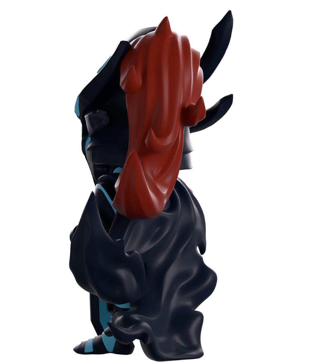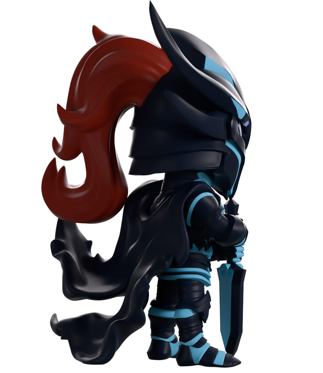 Sung Jinwoo has summoned his strongest shadow, Igris, to Youtooz to help out with his fight! Standing at 5.3 inches tall and posed with his arms bent and holding a thick pointed greatsword in both hands with its tip on the ground, light purple eyes shine from his angular helm which has a pair of cleaved horns on its left side and a mane of deep red hair flowing out from the back. With his body covered in segmented black armour that has light blue accents running from his shoulders down to his hands and feet, a long jagged cloak flicks out to the side as it curls in the wind. The exterior of his packaging looks down a long throne room with tall columns and a dazzling chandelier. The interior then is covered in a white-to-blue gradient with the ‘Solo Leveling’ logo printed on the back, while the protective sleeve looks up at a dilapidated building as a large blue moon shines above a city skyline as his figure can be seen through the large clear window at the packaging’s front. This collectible ships in a matte, embossed, protective outer sleeve and a custom-sized plastic protector for maximum protection during shipping.
