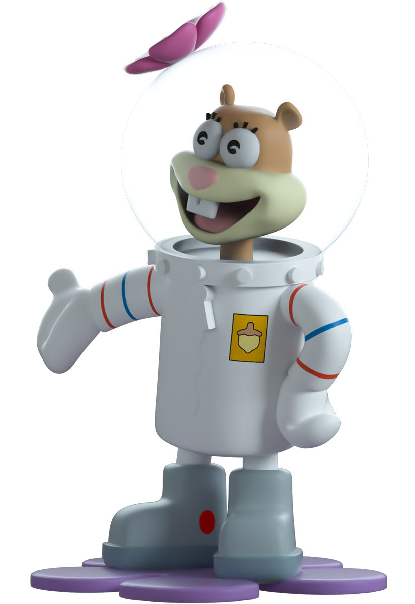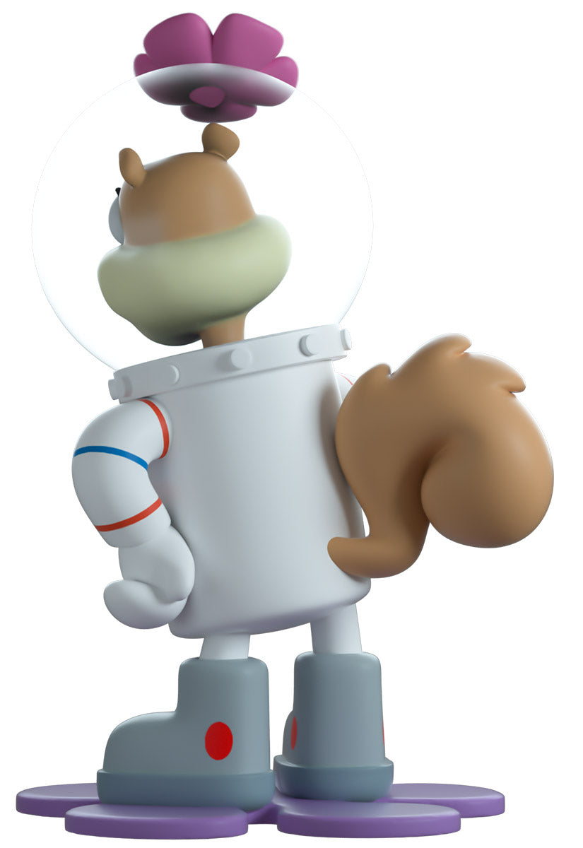 Sandy Cheeks has crashed into Youtooz for her vinyl debut! At 4.7 inches tall, a huge round dome topped with a yellow and pink flower sits over her head to provide oxygen as a cheery look crosses her face and stretches into a huge buck toothed smile. Posed with a protected arm resting on the waist of her cylindrical metal suit with its acorn emblem, the other thrusts outward welcomingly as she wears large grey boots with red circles on their sides and her huge fluffy squirrel tail curls out from the back elegantly. The exterior of her packaging sees Sandy’s domed tree along with her huge metal rocket. While the interior is an ocean blue gradient collaged with illustrations of SpongeBob. The protective sleeve is printed with SpongeBob’s bright yellow triangular pattern as her figure can be seen through the large clear window at its front. This collectible ships in a matte, embossed, protective outer sleeve and a custom sized plastic protector for maximum protection during shipping.