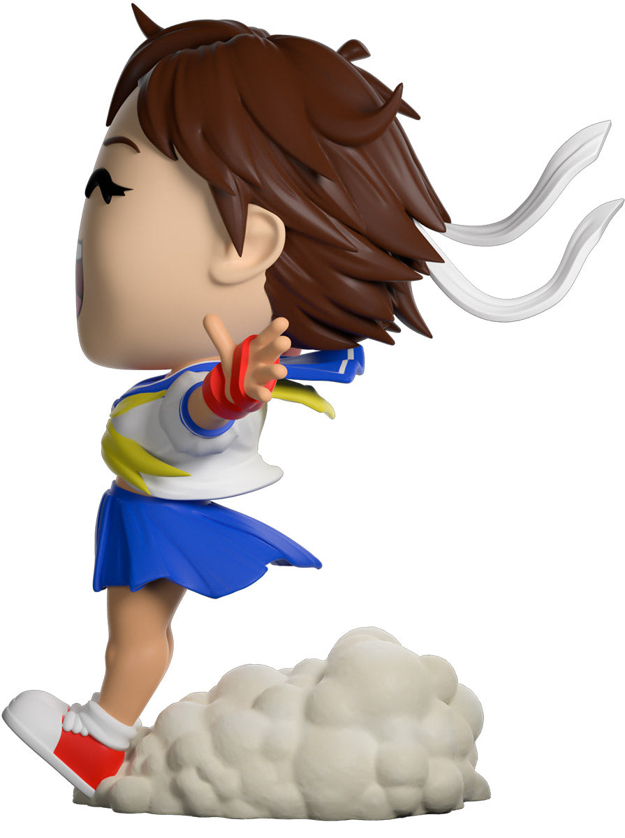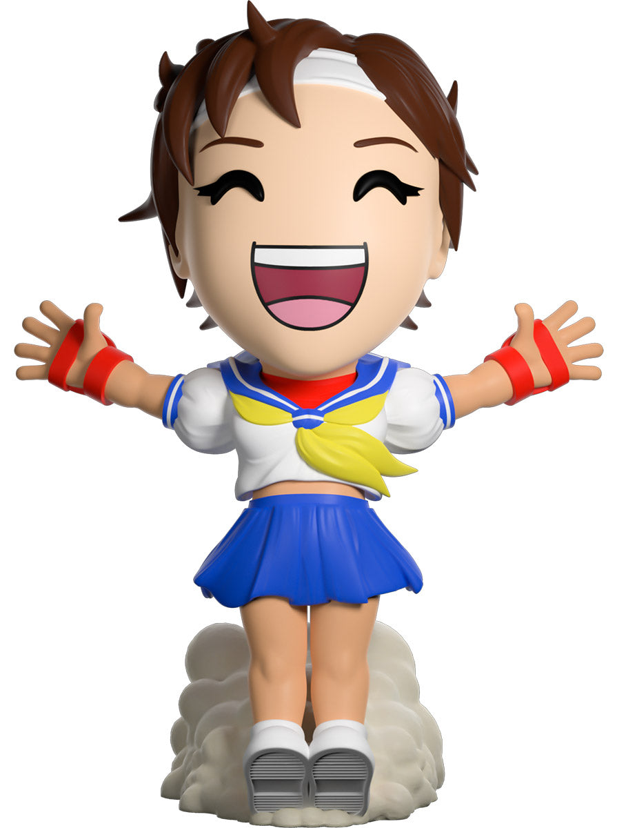 Uh oh! Pleased to meet you. Yeah!! Let's go! The ever happy Sakura makes her Youtooz debut! 4.8 inches tall, she is captured eagerly running into battle and trying to stop with her heels. The force of her run generates a cloud of smoke underneath her. She wears her Japanese school girl uniform, complete with red MMA gloves. Her outfit is captured blowing in the wind as she does her best to slow down. Her double-walled window box is illustrated after an evening rural street setting in Japan. This collectible ships in a matte, embossed, protective outer sleeve. That was an awesome fight. Thank you very much!