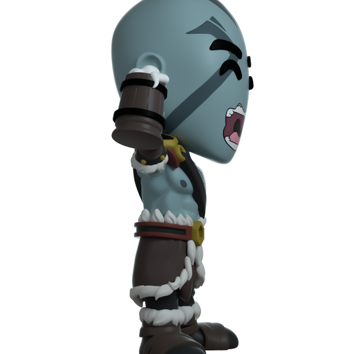 I have an intelligence of six, I know what I'm doing. Grog Strongjaw is here, he is drunk and he is a Youtooz! The collectible stands at 4.5 inches tall. Grog is posed with a frothy beverage held aloft in his right hand. He is shown wearing his classic fur-lined boots and pants. With his chiseled muscular gray torso only covered by a strap holding his shoulder pad. His mouth is agape in a rippling shape showcasing a manly belch. The windowed display box showcases Grog with his axe having a great time in a tavern, as beer spills and a severed hand flies off. The interior of the box has been illustrated with The Legend of Vox Machina logo over the top of a view of the continent as strings of golden light dance across. Illustrated on the protective sleeve shows silhouettes of all the campaign members in front of a golden sunset. This collectible ships in a matte, embossed, protective outer sleeve and a custom-sized plastic protector for maximum protection during shipping.
