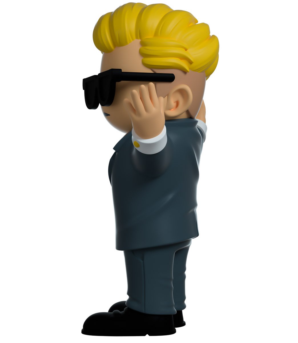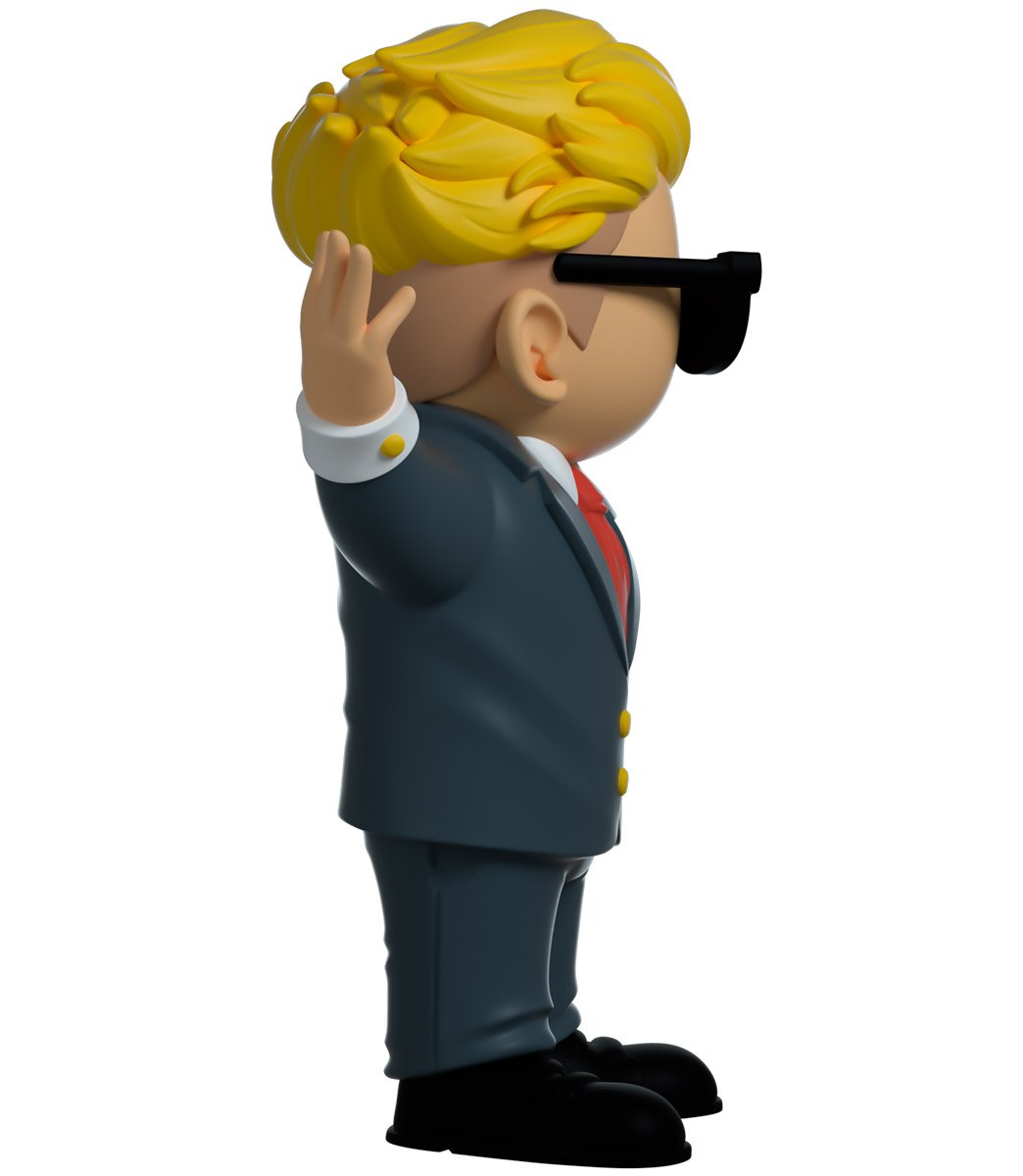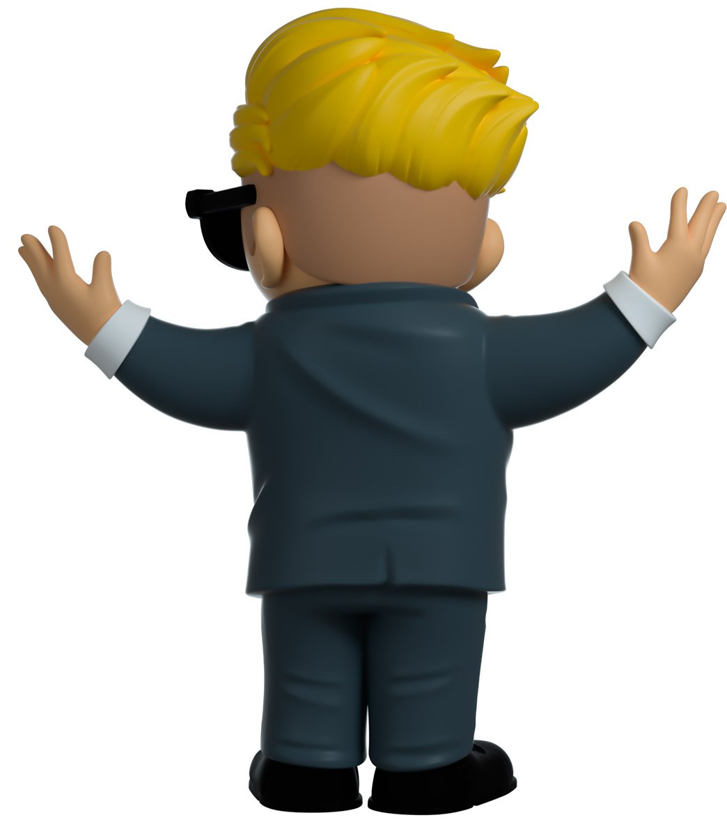 Here he is, the guy your wife’s boyfriend told you not to worry about. Wallstreet Bets Kid enters the fray and is ready to make moves. Standing at 4.5 inches tall, arms outstretched in a stylish gold buttoned grey two piece suit, black shoes and a white shirt with red tie to finish the look. His blonde hair slicked back with an immaculate fade and stylish thick black sunglasses accentuating his cool facial expression. But wait, what’s this?! 1 in 100 WSB kids Youtooz have the chance to be a gold chrome variant! Will yours be the one? The exterior of his double-walled packaging shows him fearlessly ready to take on Wall Street. While the interior is a cool blue gradient stock chart displaying gains as green and orange lines as green bills float around. The protective sleeve shows WSB kid riding his rocket to the moon while more bills rain down around him, set to a backdrop of a city skyline and starry night sky. This collectible ships in a matte, embossed, protective outer sleeve and a custom sized plastic protector for maximum protection during shipping.